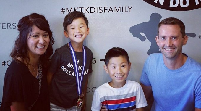 The boy next to Dad is handsome Hyun Bin. I'm ten years old now, and I'm Taekwondo. Lots of friends. I am frustrated because I grew up in the United States and grew up nicely.