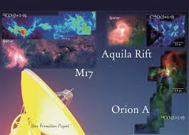 Enrico de Lazaro가 2020 년 3 월 25 일 " 이전| 일본에서 노베 야마 45m 전파 망원경 을 사용하는 천문학 자 들은 근처에있는 3 개의 분자 구름 인 Orion A , Aquila Rift 및 Messier 17 (M17)에 대한 매핑 관찰을 수행했습니다 . Star Formation Project와 Nobeyama 45-m Radio Telescope에서 관찰 한 Orion A, Aquila Rift 및 Messeir 17의 CO 분자 무선 방출 선 강도. 이미지 크레디트 : NAOJ. Star Formation Project와 Nobeyama 45-m Radio Telescope에서 관찰 한 Orion A, Aquila Rift 및 Messeir 17의 CO 분자 무선 방출 선 강도. 이미지 크레디트 : NAOJ.