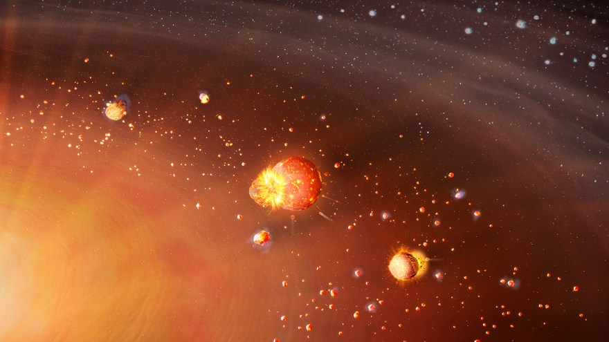내부 지상의 원시 행성은 초기에 축적되었고 강한 방사능 붕괴에 의해 내부적으로 가열되었다. 이것은 그것들을 건조시키고, 외부의 습한 행성 개체군으로부터 건조하고 내부를 분리 시켰습니다. 이것은 외계 행성계에서 지구와 같은 행성의 분포 및 필요한 형성 조건에 대한 몇 가지 의미를 가지고 있습니다. 학제 간 팀에 의해 수행 된 수치 실험은 내부 태양계에서 초기 시작 및 장기간의 부착 완료의 상대적 연대기 및 외부 태양계 행성의 나중에 시작되고 더 빠른 부착이 다음의 두 가지 뚜렷한 형성 시대로 설명 될 수 있음을 보여주었습니다. planetesimals, 행성의 빌딩 블록. 행성을 형성하는 원반에 대한 최근 관찰에 따르면 행성이 형성되는 원반 미드 플레인은 상대적으로 낮은 수준의 난류를 가질 수 있습니다.